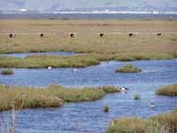 Hundreds of marbled godwits, terns and bonaparte's gulls at roost